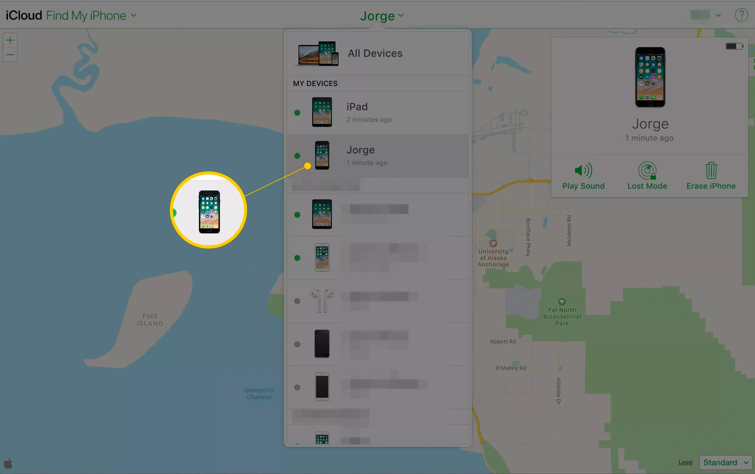 - Velg «Find iPhone» for å søke etter alle enheter som er logget på med din Apple ID.