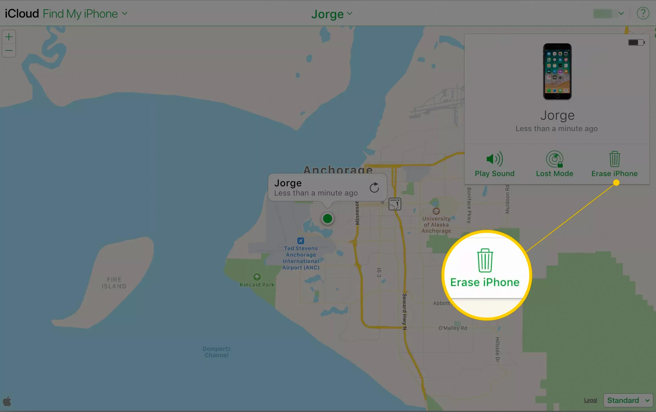 - For å slette innholdet på iPhonen, hvis du ikke tror du får den tilbake, klikker du på «Slett iPhone». Når du sletter innholdet på telefonen din, eliminerer du også muligheten for å finne den igjen ved hjelp av “Finn iPhone”.